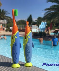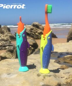 Pierrot Sharky Kids Toothbrush for Fun & Easy Brushing (2-Pack) – with Soft Bristles, Suction Base, Easy-Grip Handle & Protective Cap | For Toddlers & Children Ages 2-8