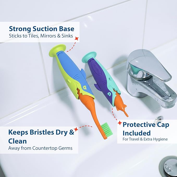 - MAKE BRUSHING FUN & EASY – Turn brush time from a daily chore into an exciting activity! The playful shark design captures your child’s imagination, helping you build healthy and consistent oral care habits from a young age.